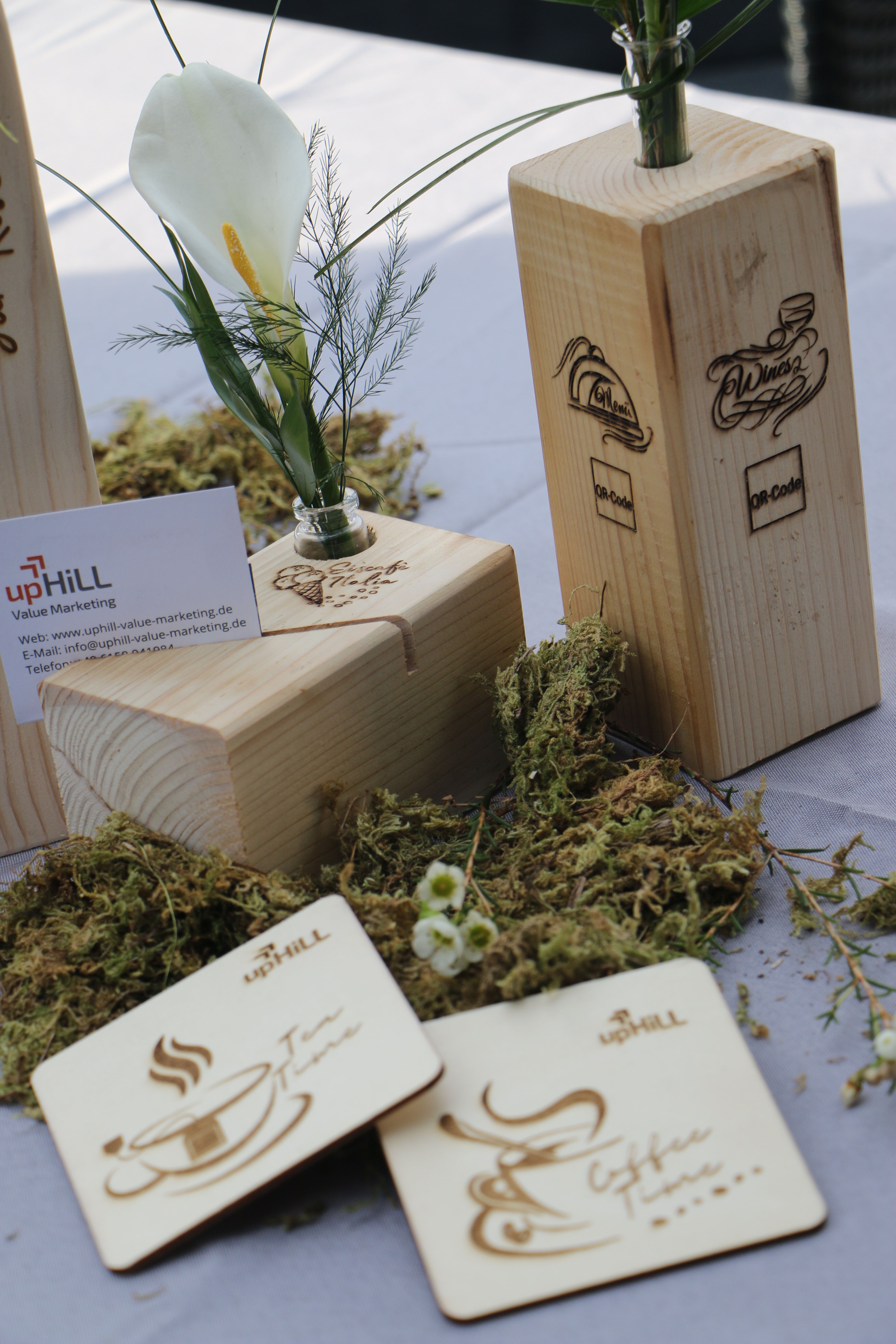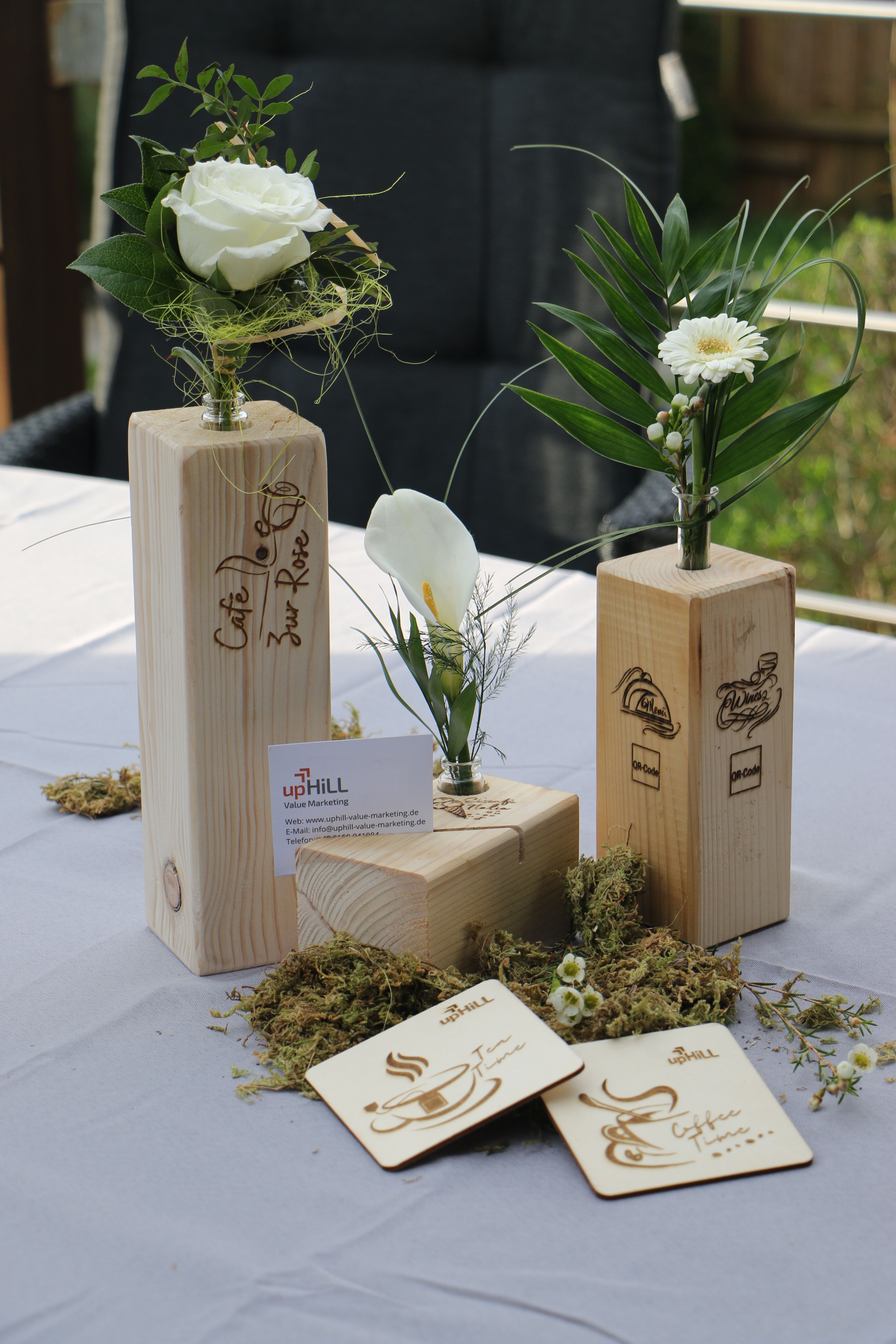 Mit unseren Holzvasen mit Glaseinsatz im urigen Holz-Design bringen Sie ein Stück Natur und Atmosphäre auf jeden Tisch. Wir fertigen in verschieden Holzarten.